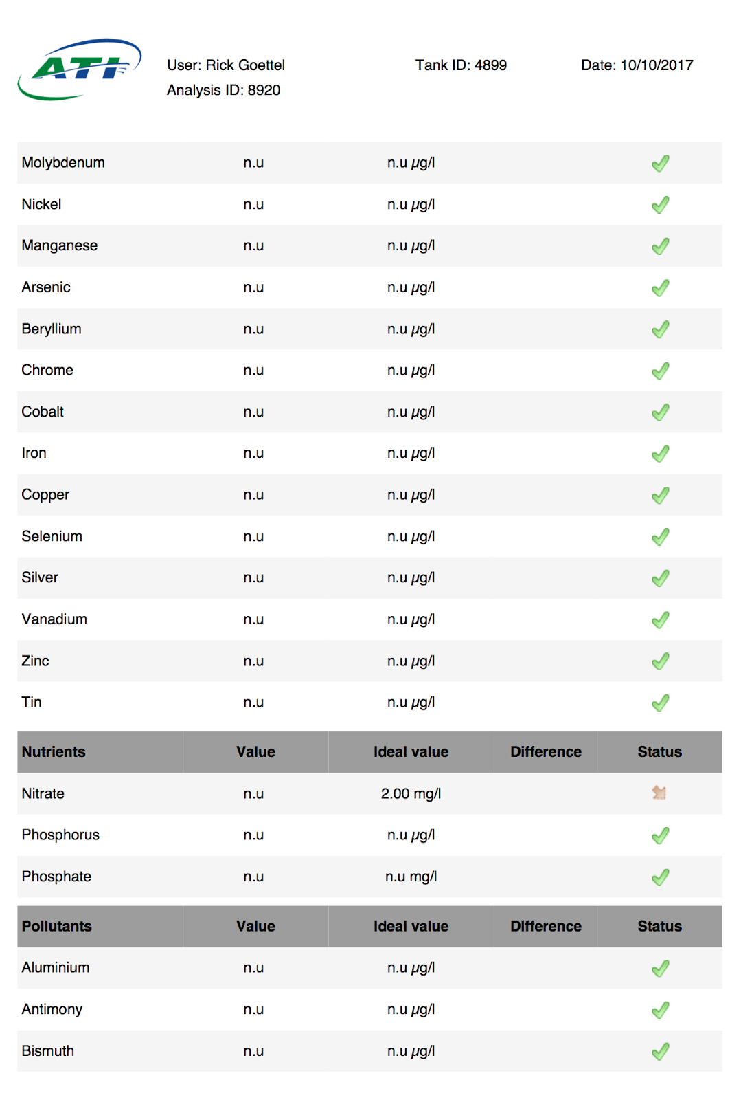 Below are the results of my August 15th CoralVue ICP Test.